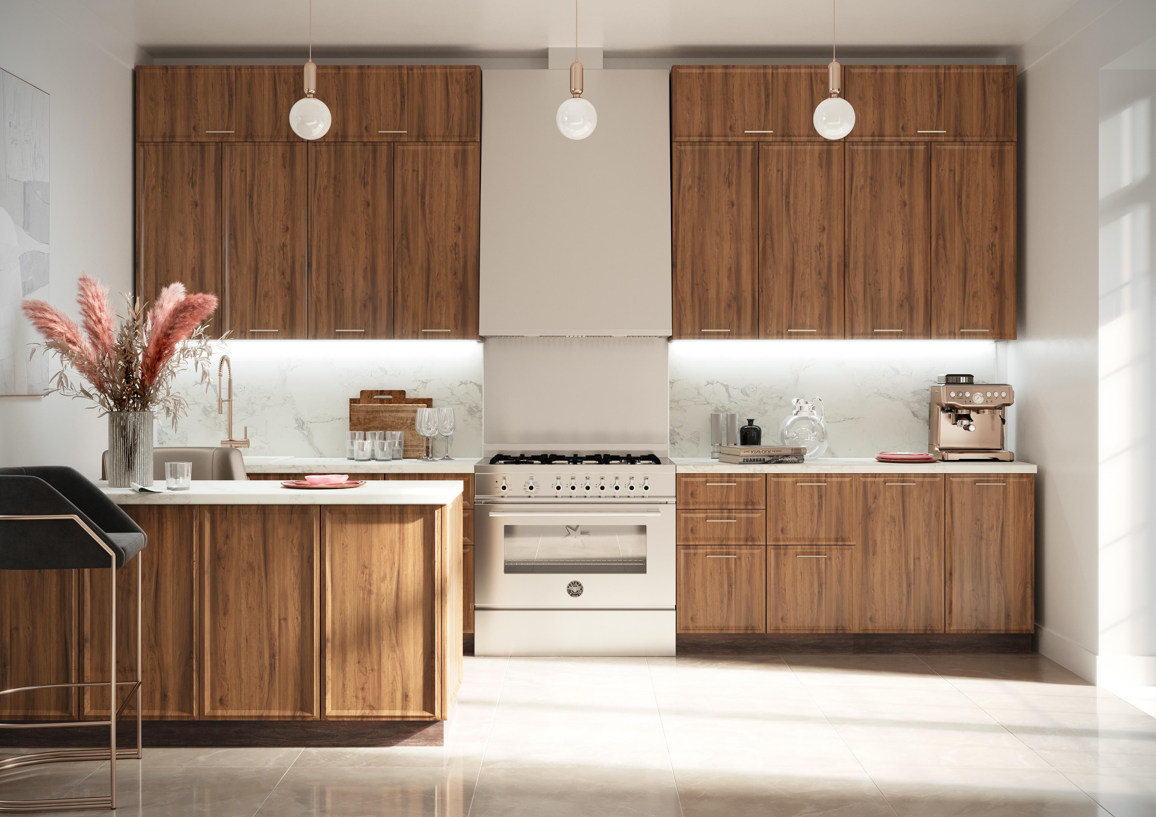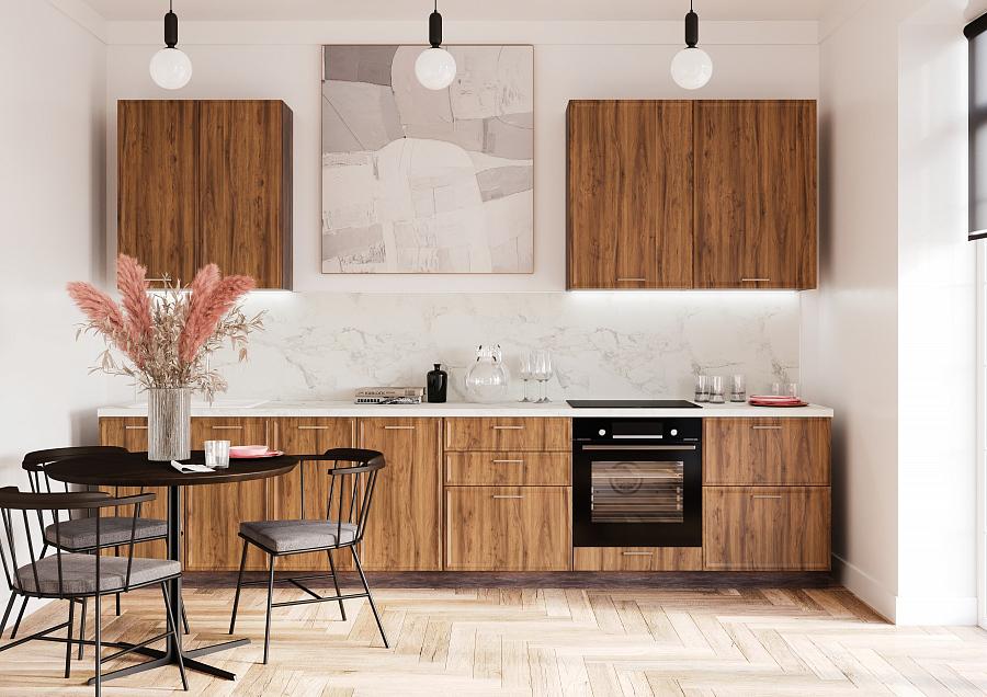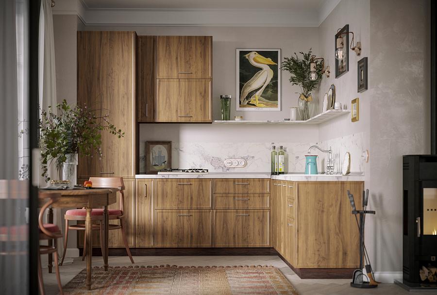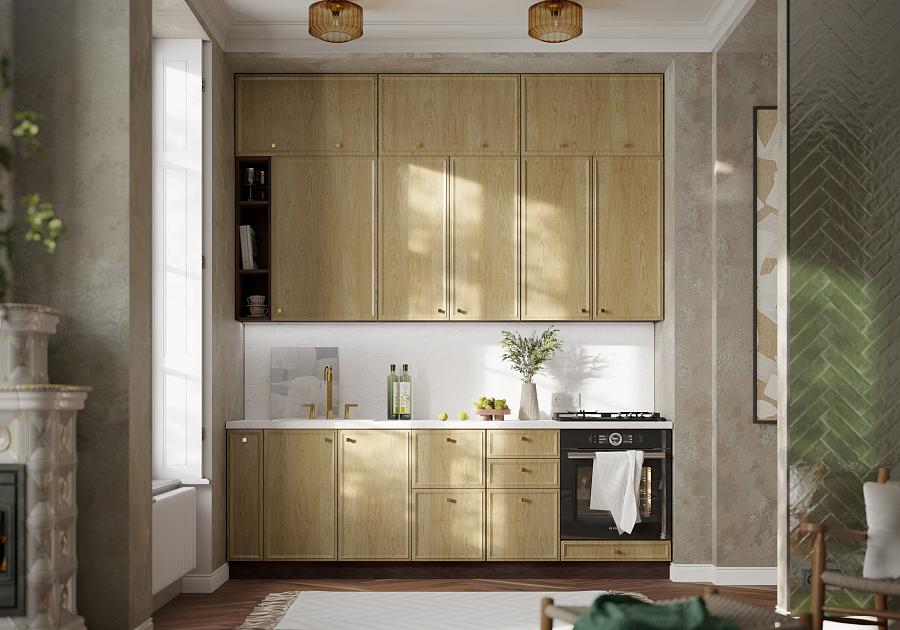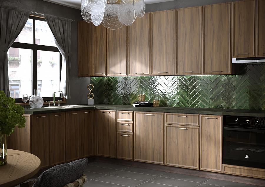 Модерновые формы фасада в обрамлении элегантного бортика и необычная древесная фактура стали отличительной чертой этого гарнитура. Характер рисунка отличается от привычных всем древесных покрытий последнего времени. Это, определенно, облик, который претендует на премиальный сегмент. Подобный дизайн - тренд будущих лет. Два не теряющих актуальности оттенка: светлый «Дуб Шампань» и насыщенный «Дуб Бурбон» - станут союзниками при создании как классических, так и интерьеров в стиле модерн. «Дуб Шампань» - светлое дерево с деликатным рисунком - отличный компаньон лаконичных интерьеров. А насыщенная фактура оттенка «Дуб Бурбон» станет «богатой» основой для харАктерной атмосферы кухни. Кто сказал, что шик и великолепие всегда равно дорого. С линейкой «Беверли» воплотить интерьер с картинки глянцевого журнала уже не кажется чем-то недосягаемым. И возможность построения «звездных» интерьеров стала еще ближе.