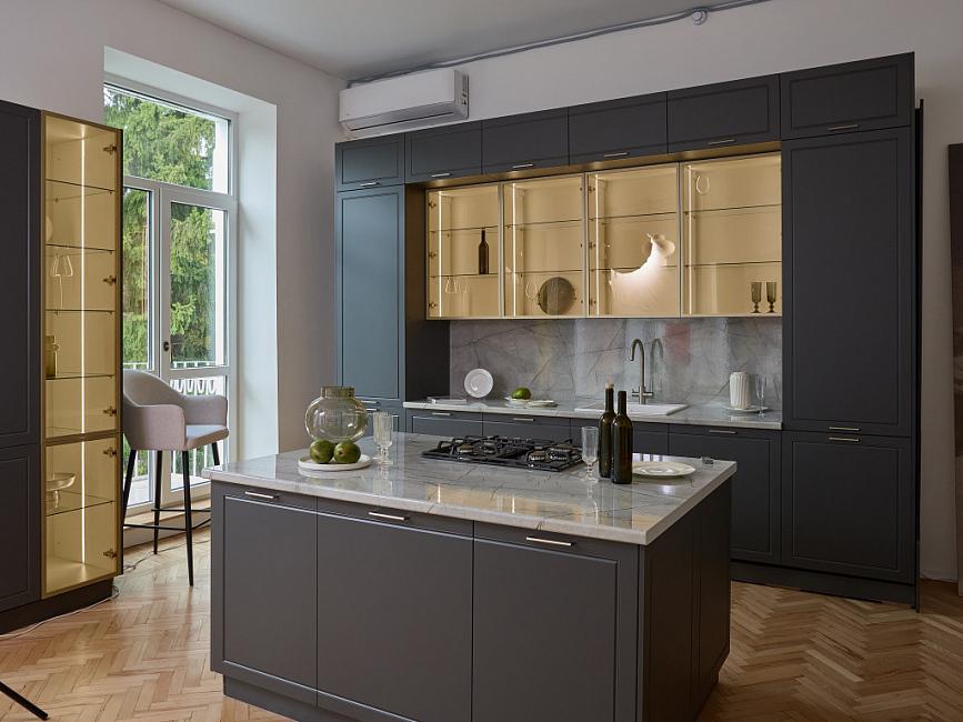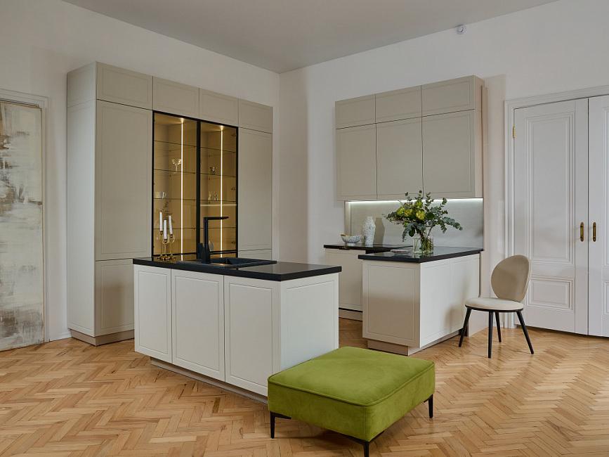 Линейка фасадов «Маноло» призвана стать настоящей иконой стиля в кухонном дизайне – смелой, уверенной и одновременно утонченной. Все в ней говорит о хорошем вкусе и современном взгляде на интерьер. Палитра оттенков включает4 актуальных оттенка: чистый белый, изысканный кварц, небесно-голубой и глубокий грифельно-серый. Маноло – яркий представитель стиля неоклассика, минималистичный контур фрезеровки сохраняет изящество традиционных фасадов, при этом выглядит актуально в современных интерьерах. Фрезеровка напоминает аккуратный молдинг, интерьеры с молдингами сейчас набирают обороты и становятся очень популярными.