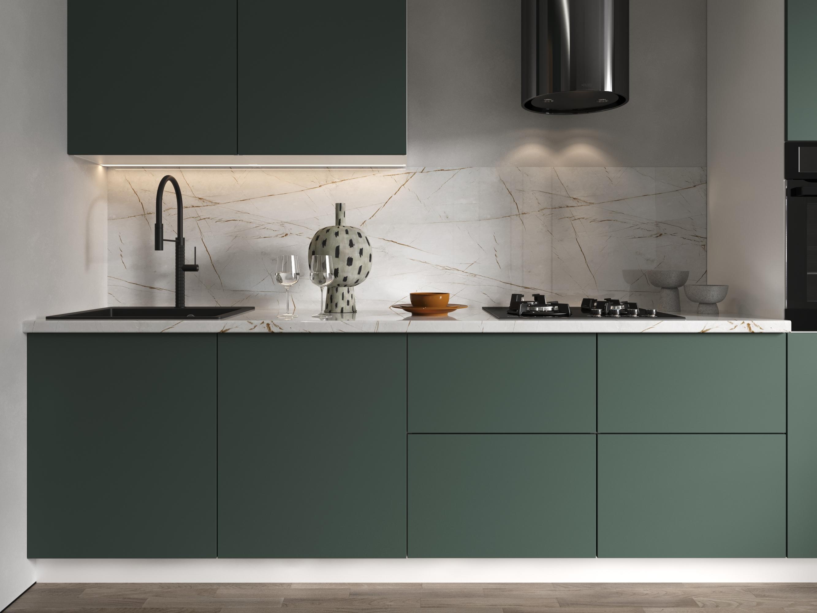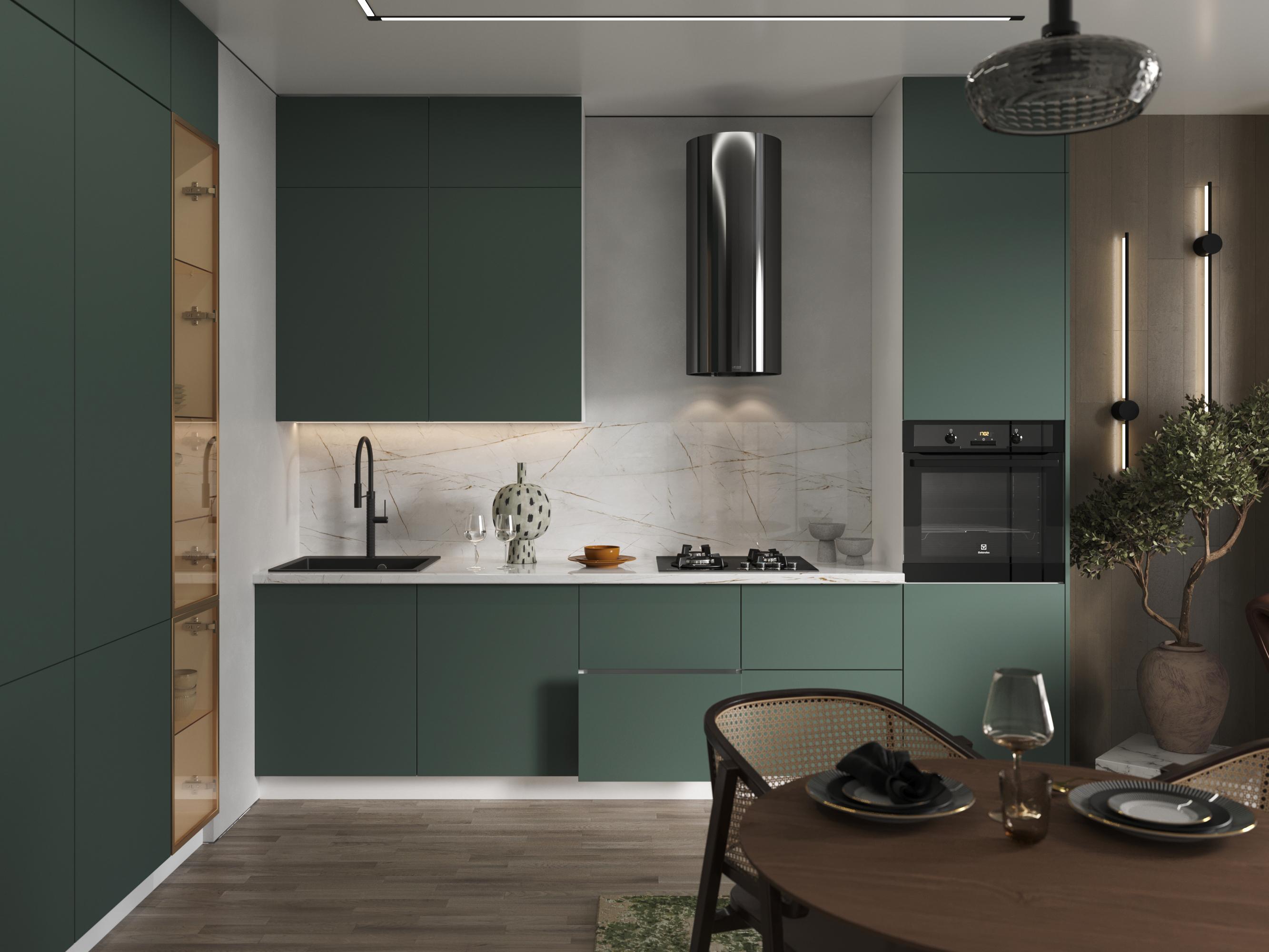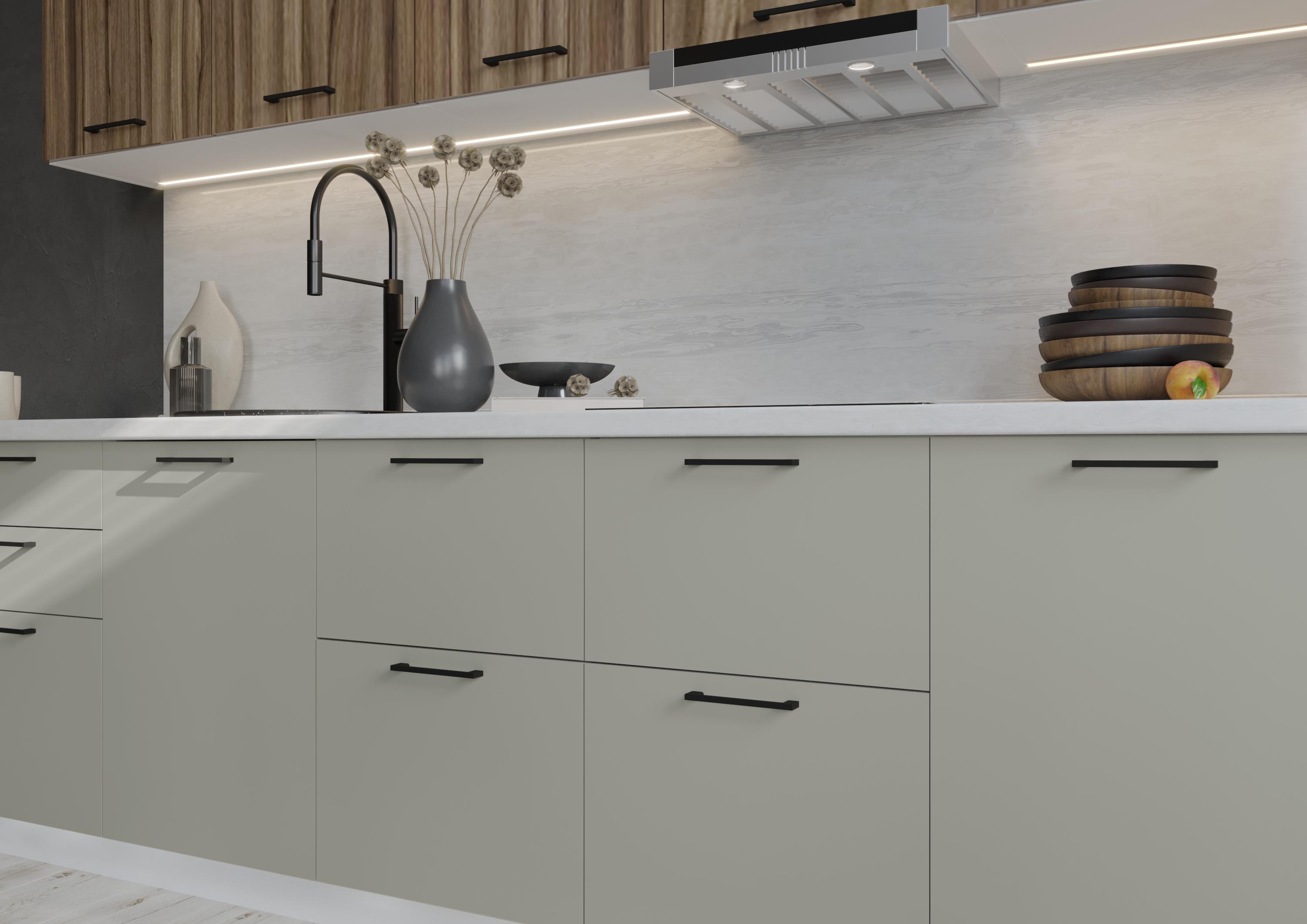 Мы предлагаем дизайн кухни со скрытыми механизмами открывания, который идеально подходит для тех, кто любит современный стиль. Вы можете снабдить гарнитур функциональными механизмами «push-to-open», чтобы поверхность оставалась идеально ровной. Глянцевый гарнитур станет отличным компаньоном к любым напольным покрытиям и кухонной технике. А мягкие и деликатные тона матовых фасадов украсят пространство и визуально добавят кухне роскоши.