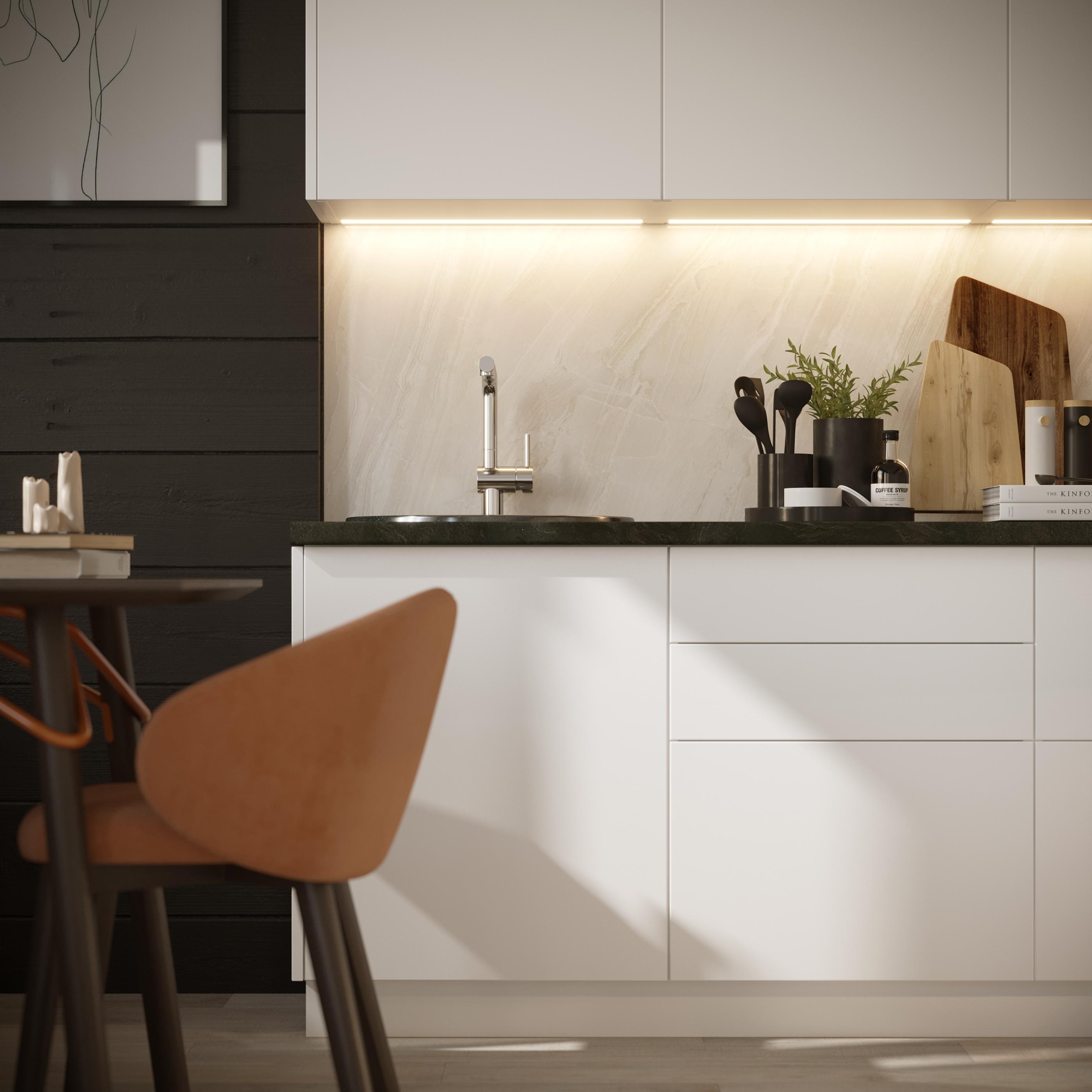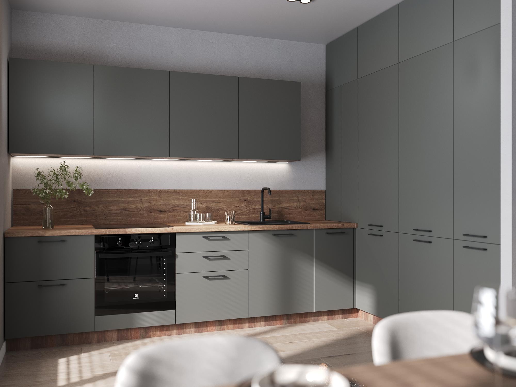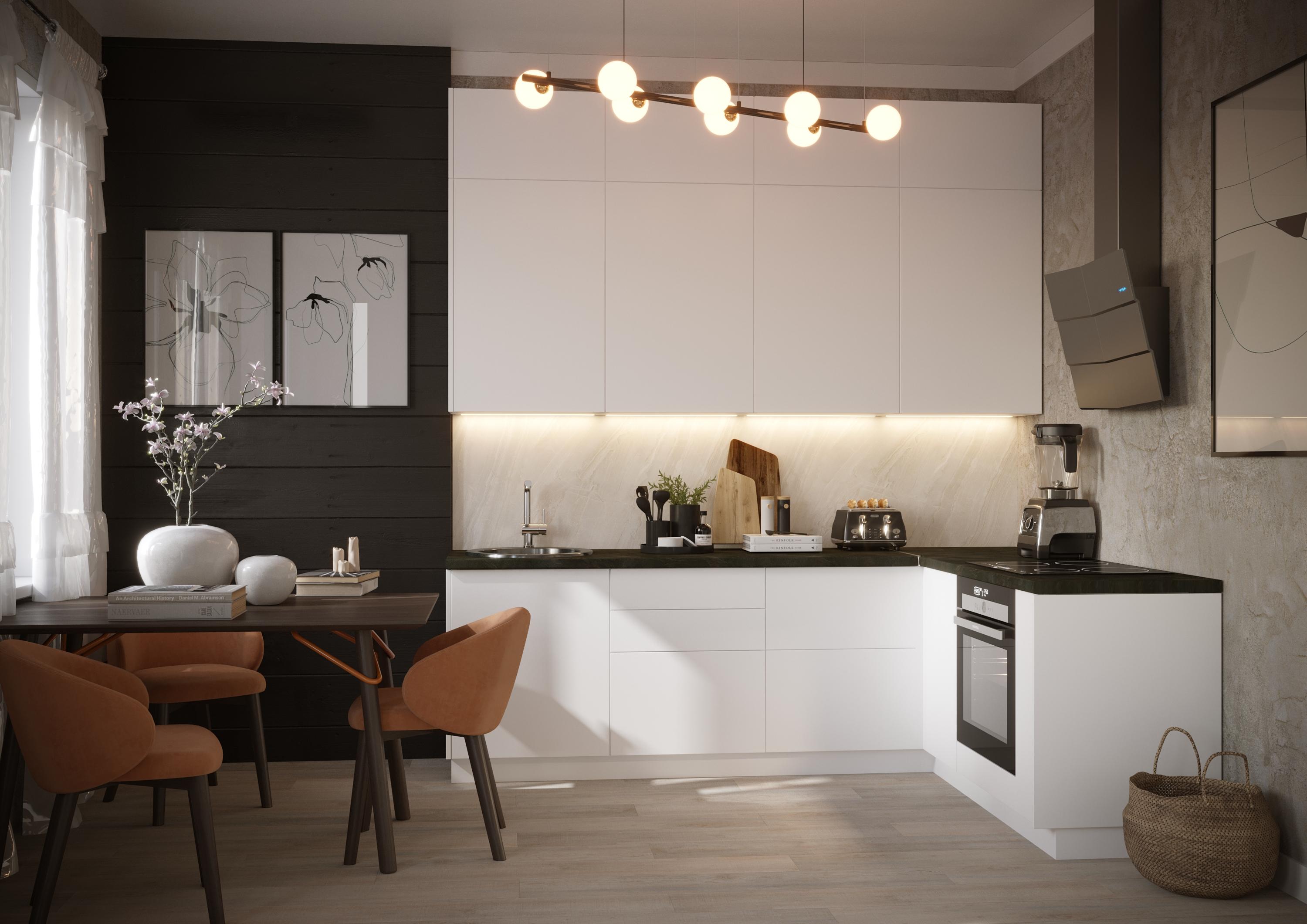 Мы предлагаем дизайн кухни со скрытыми механизмами открывания, который идеально подходит для тех, кто любит современный стиль. Вы можете снабдить гарнитур функциональными механизмами «push-to-open», чтобы поверхность оставалась идеально ровной. Глянцевый гарнитур станет отличным компаньоном к любым напольным покрытиям и кухонной технике. А мягкие и деликатные тона матовых фасадов украсят пространство и визуально добавят кухне роскоши.