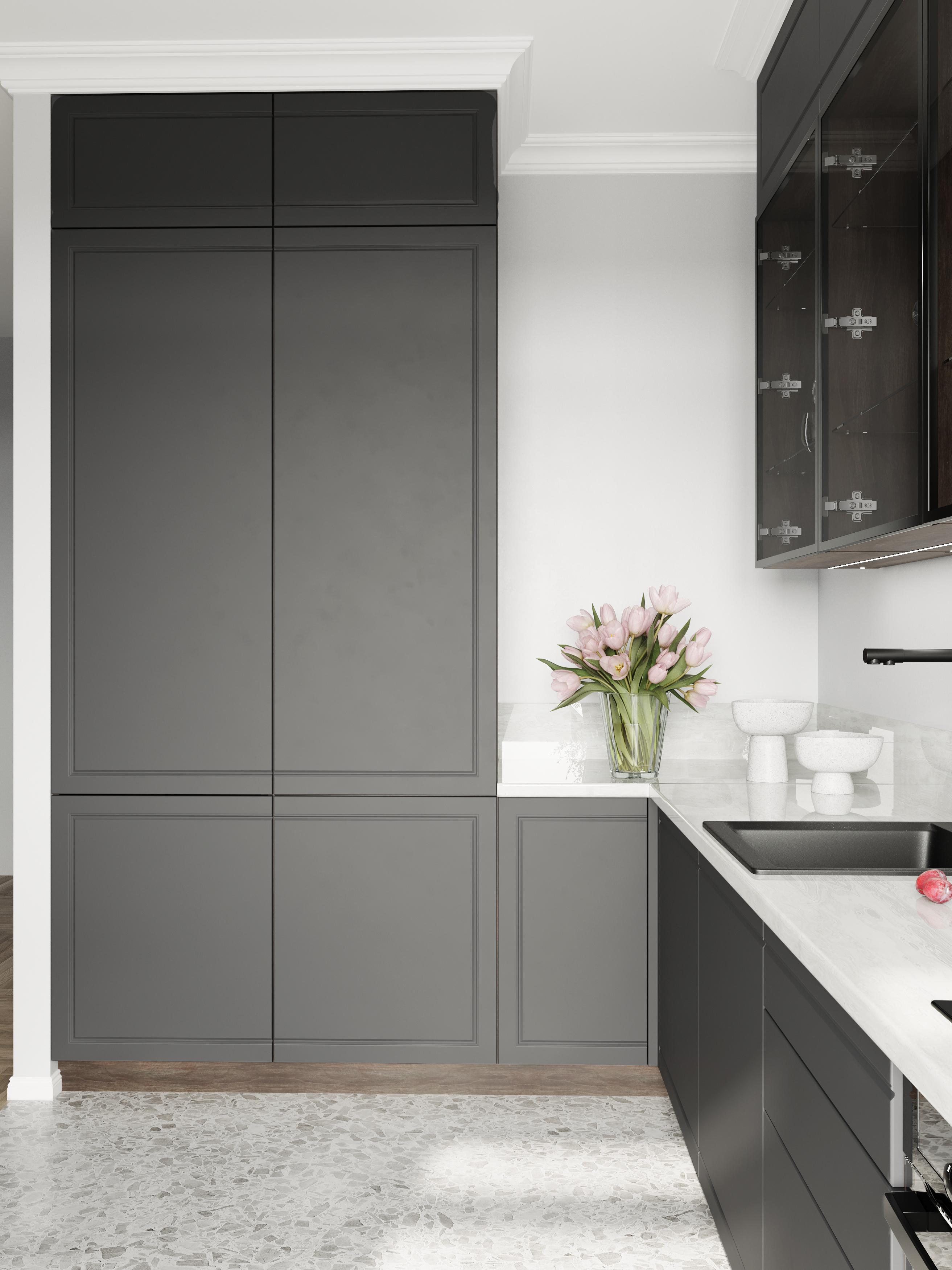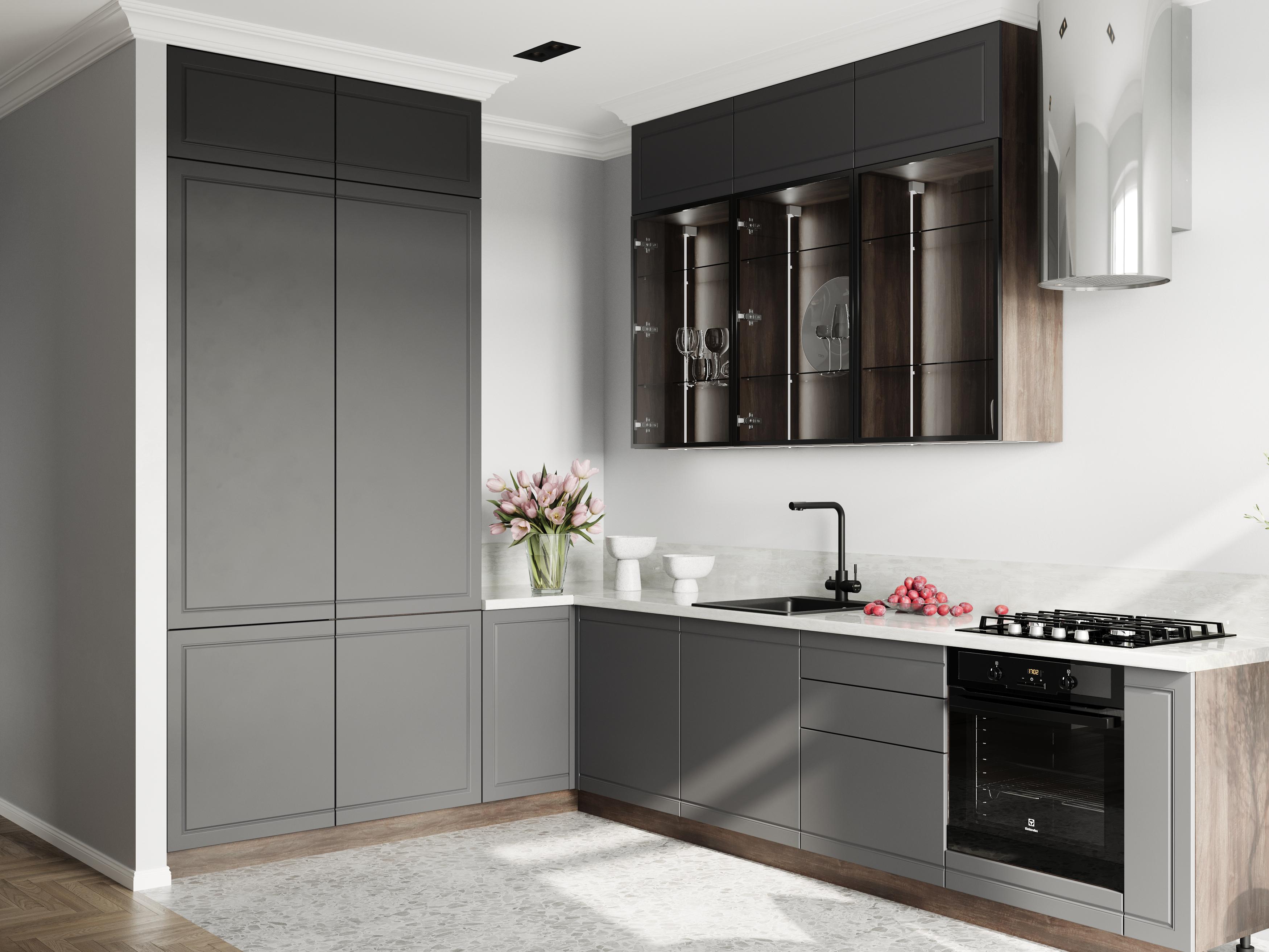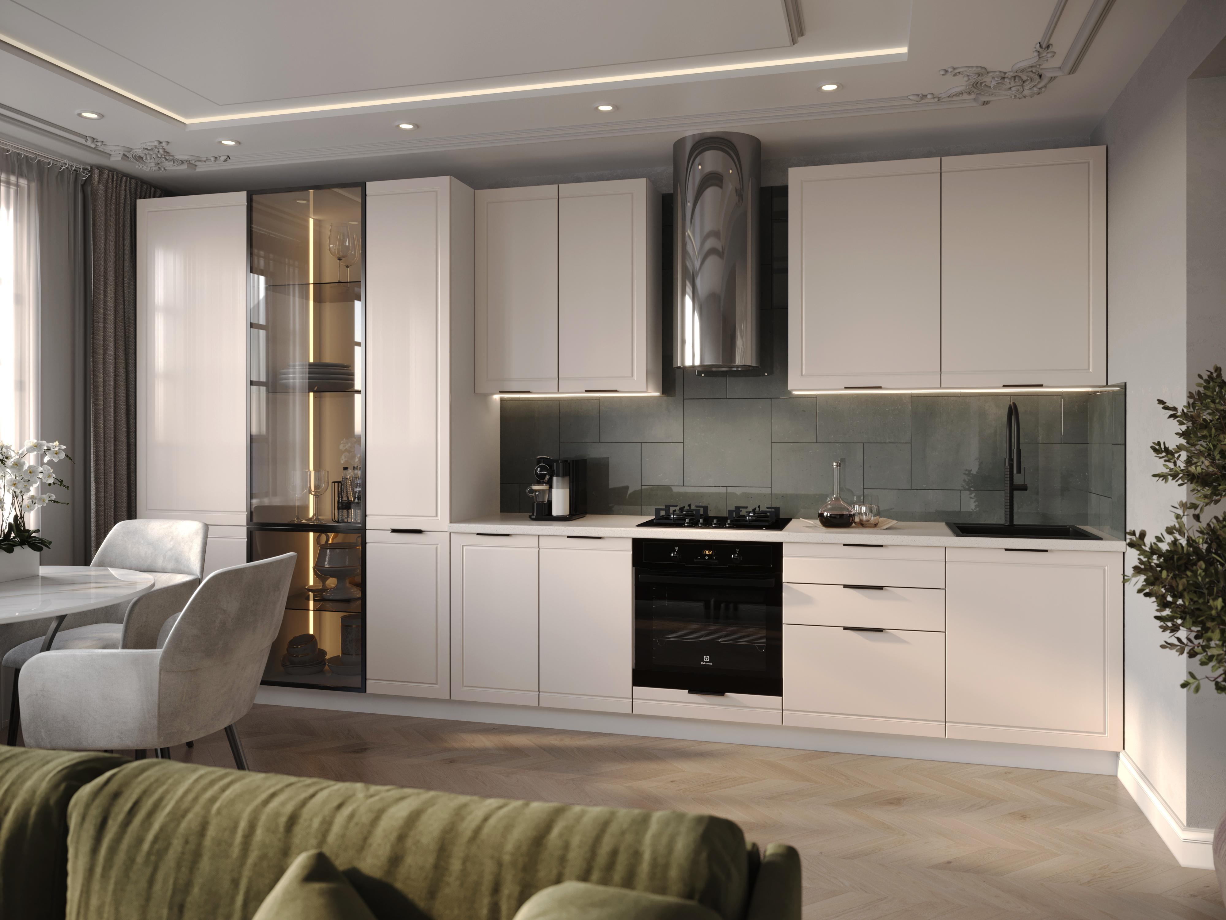 Линейка фасадов «Маноло» призвана стать настоящей иконой стиля в кухонном дизайне – смелой, уверенной и одновременно утонченной. Все в ней говорит о хорошем вкусе и современном взгляде на интерьер. Палитра оттенков включает4 актуальных оттенка: чистый белый, изысканный кварц, небесно-голубой и глубокий грифельно-серый. Маноло – яркий представитель стиля неоклассика, минималистичный контур фрезеровки сохраняет изящество традиционных фасадов, при этом выглядит актуально в современных интерьерах. Фрезеровка напоминает аккуратный молдинг, интерьеры с молдингами сейчас набирают обороты и становятся очень популярными.