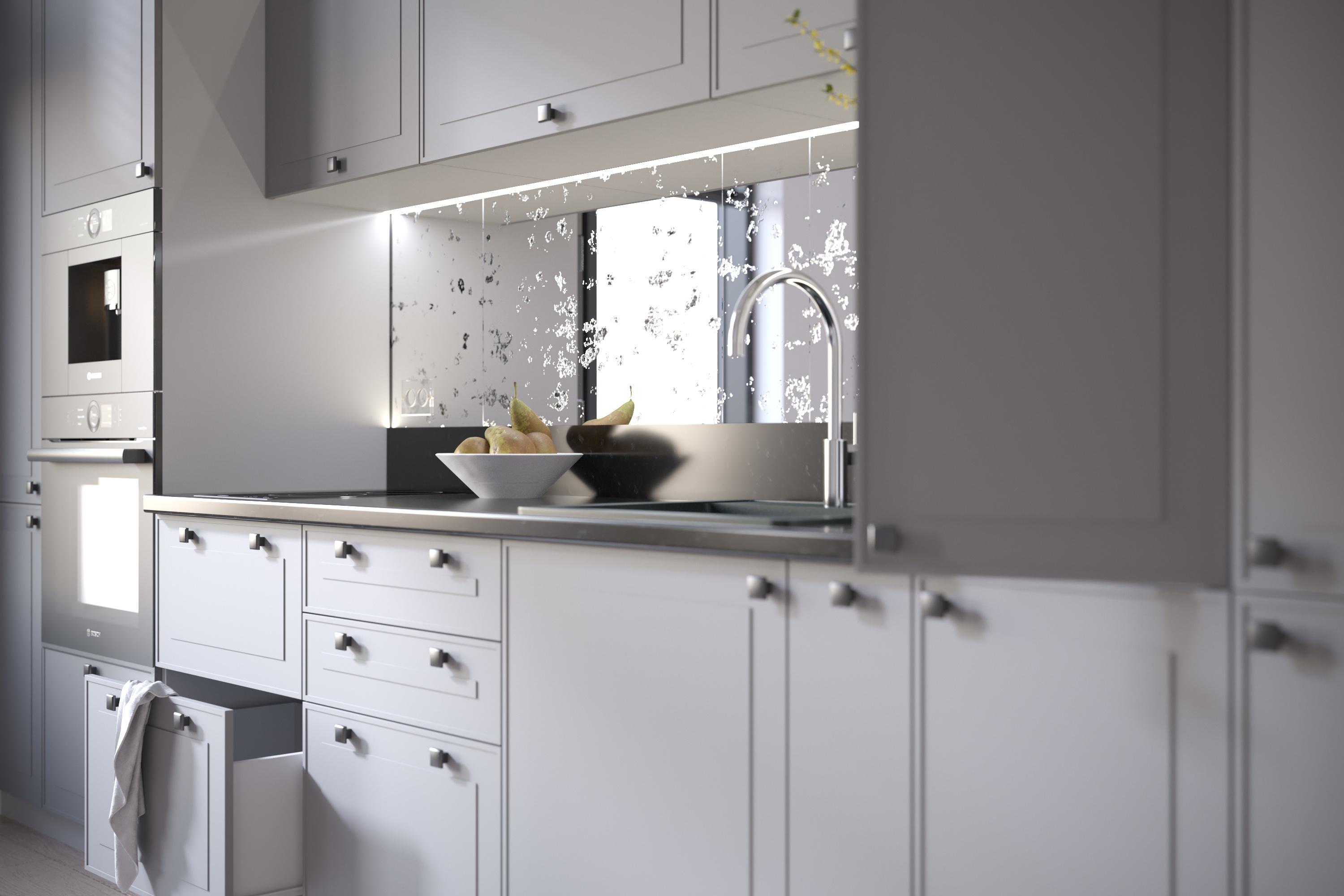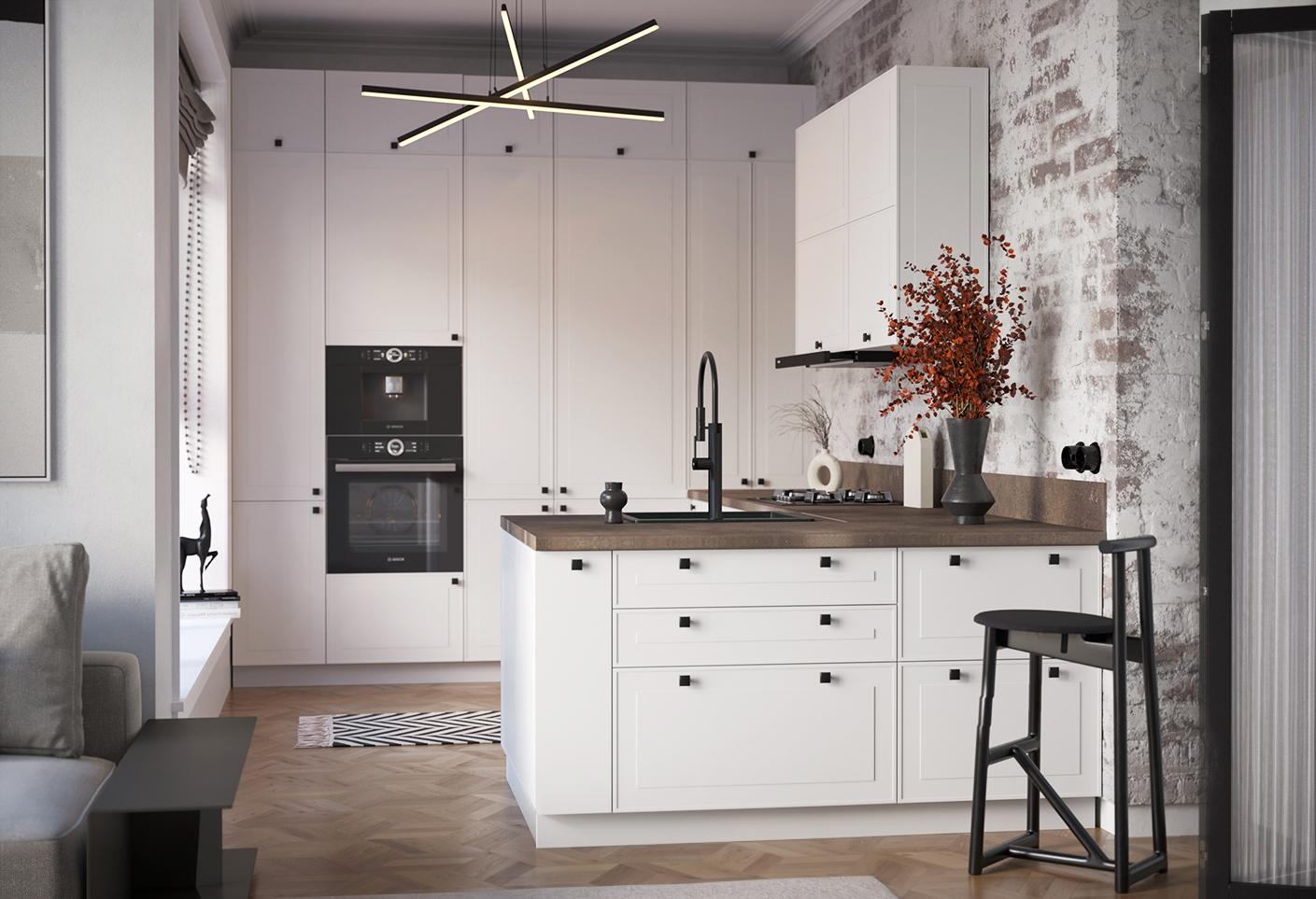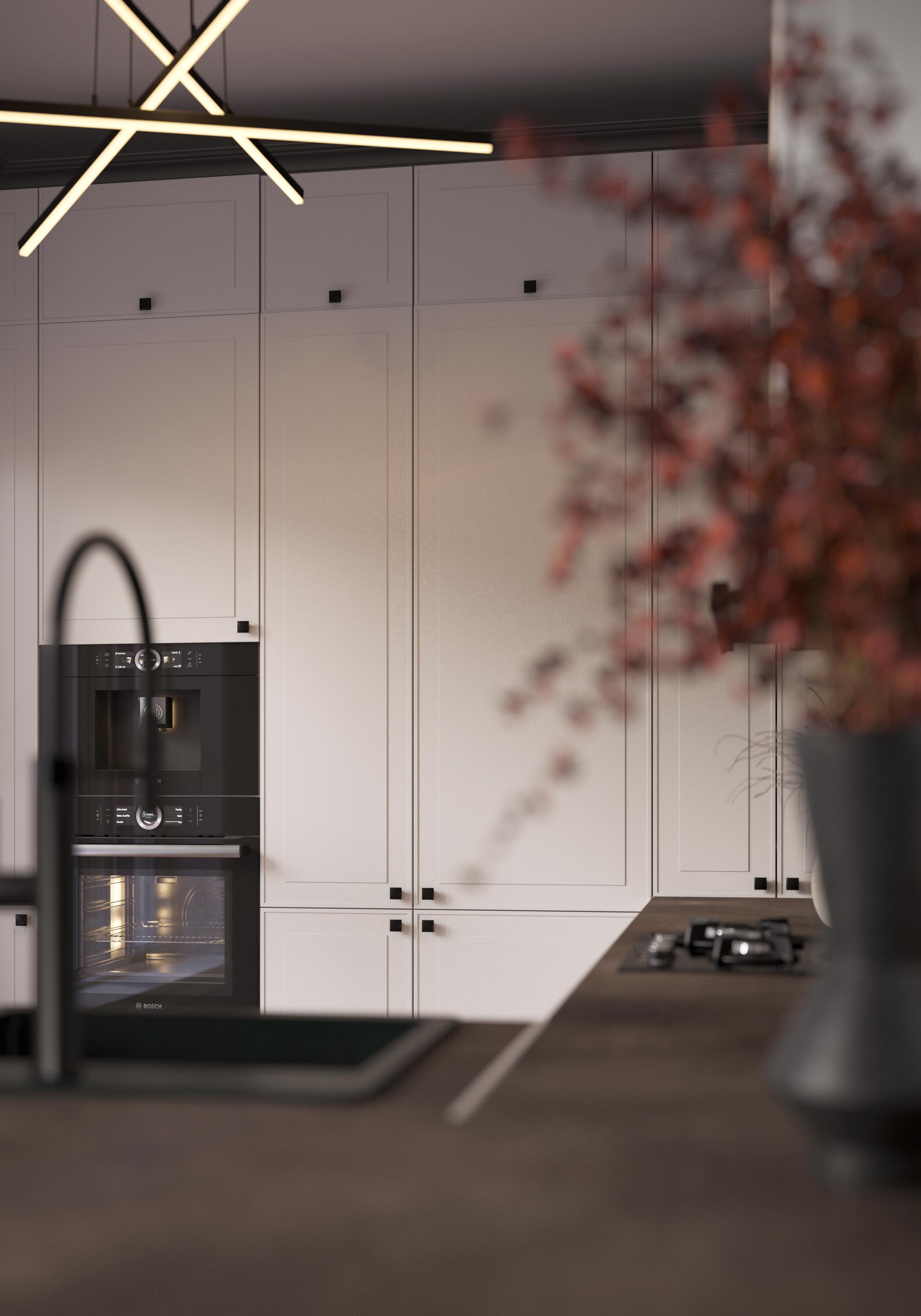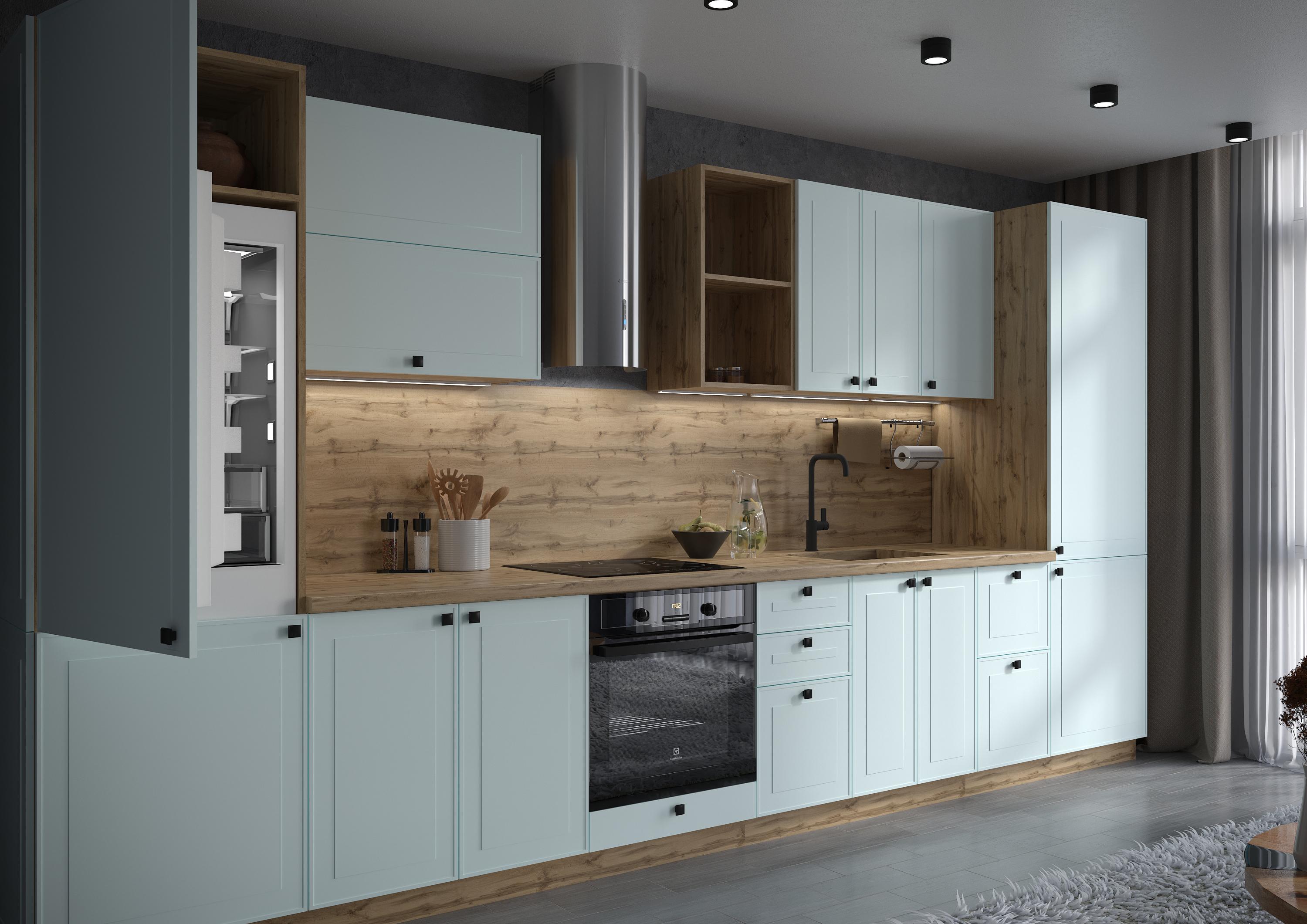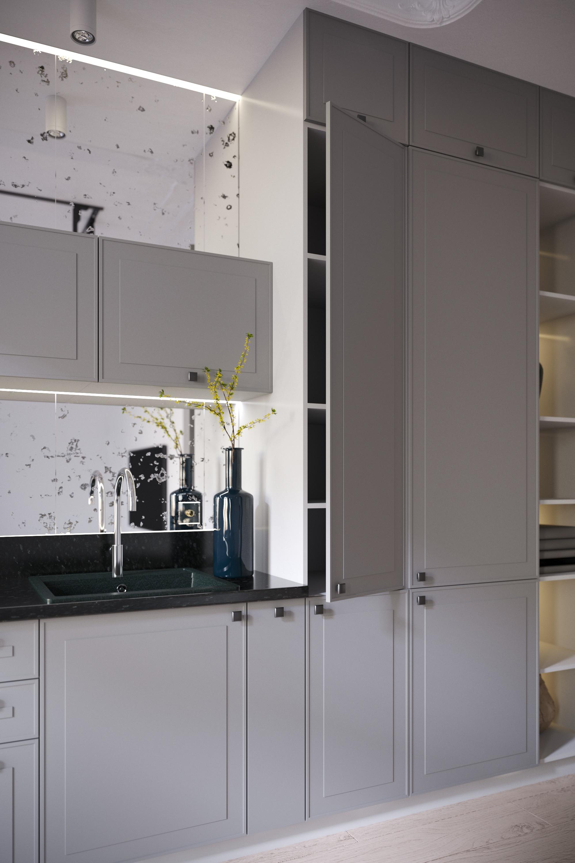 В кухонный линейке «Перфетта Роял» эмаль идеально подчеркивает безупречно выверенную архитектуру фасада. Деликатный блеск краски делает гарнитур еще более выразительным.
